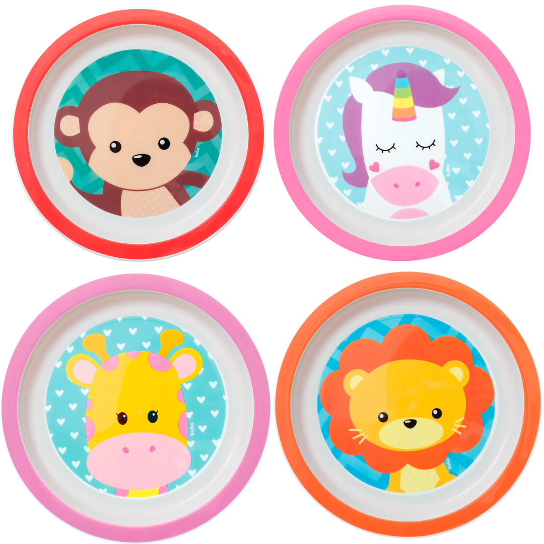 Prato Raso Animal Fun Introdução Alimentar Bebê Infantil Buba Pode Microondas e Lava Louças